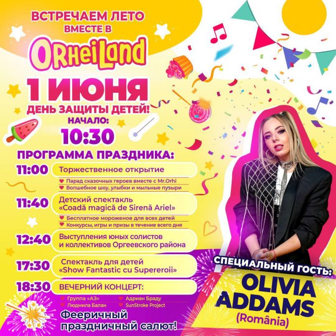 На сцене — выступления талантливых детей и коллективов из Оргеевского района, а позже — динамичное шоу «Супергерой» с любимыми персонажами, зрелищными сценами и посылом о дружбе и отваге.